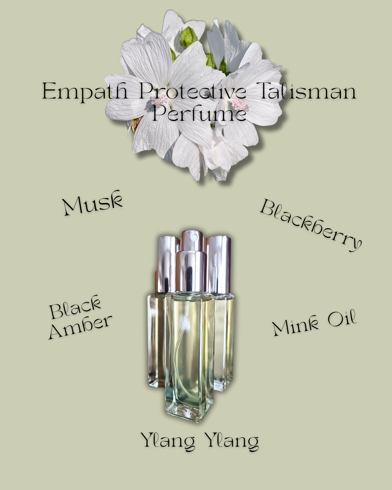 Empath® is a Protective Talisman Perfume crafted with Blackberry, Musk, Black Amber, Ylang Ylang and Mink Oil imbued with spirit as an auric halo of perfumed divinity.